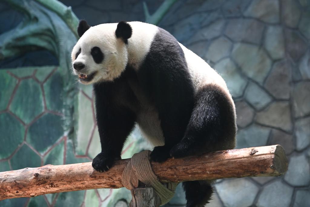 继续前行进入大熊猫2号馆,便能看到园内唯一的雌性大熊猫“曼兰”。今年7岁的它“两耳不闻窗外事”,疾步快走,不停地在馆舍内绕圈子。住在它隔壁的6岁雄性大熊猫“满满”则镜头感十足,当游客拿出手机拍摄时,它趴在地上吐舌头“卖萌”,不一会又变换姿势,攀上木桩玩耍,吸引众多游客纷纷按下快门,记录它活泼可爱的一面。