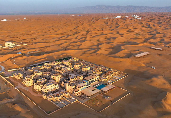 他曾经喜欢给外国游客讲沙漠里海市蜃楼的故事——他并未亲眼见过,只是听老一辈人说起。20多年前,他在迪拜看到沙漠里林立的酒店集群,内部设施豪华舒适,人在其中既能感受沙漠之美,又能免受日晒之苦。他意识到,“海市蜃楼”可以成为现实。