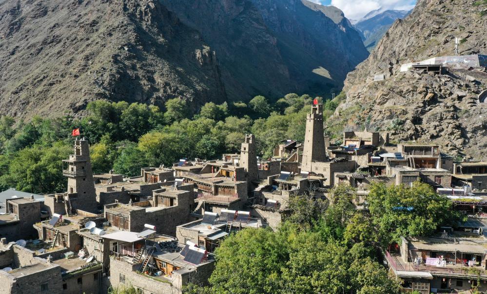 图为桃坪羌寨的古碉楼(无人机照片)。新华社记者 王曦 摄