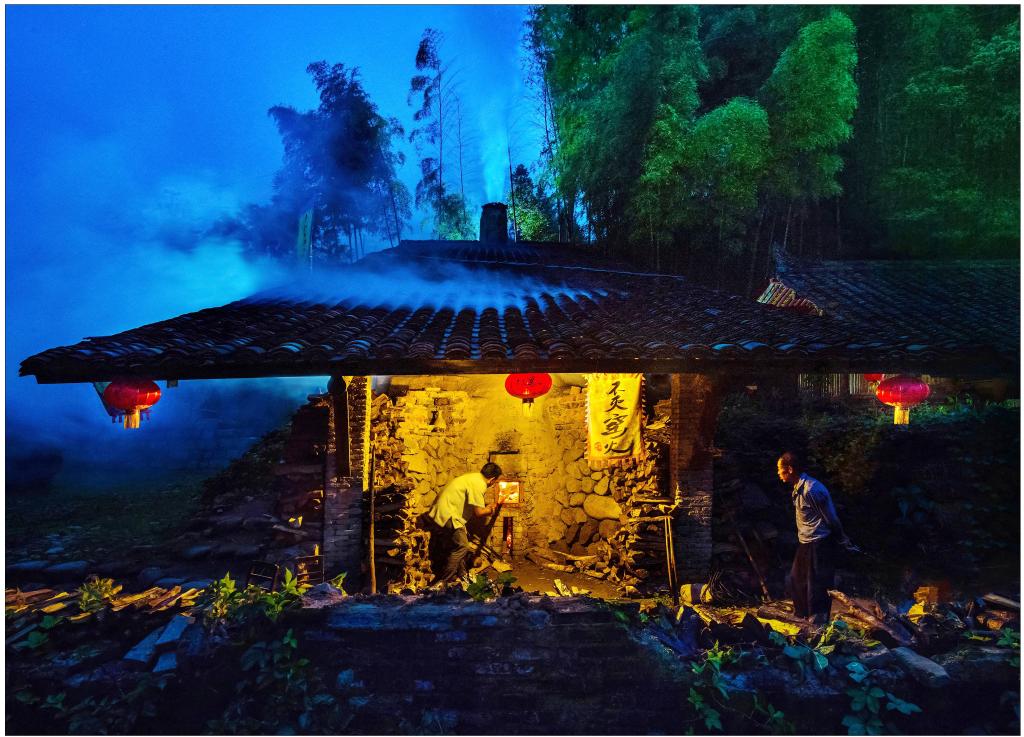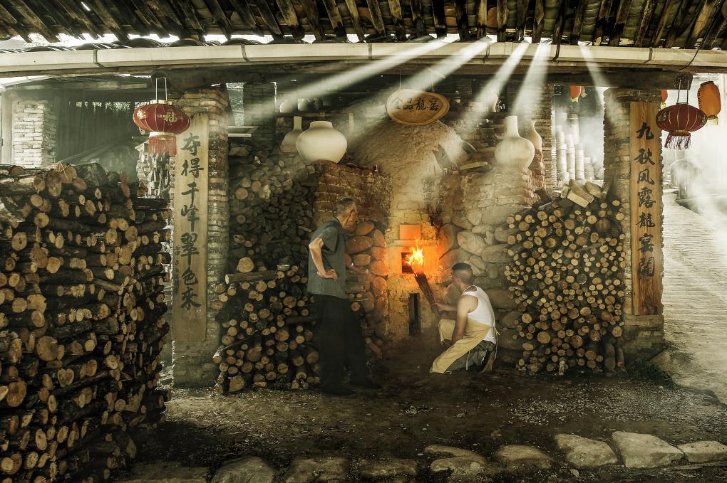 溪头村金品龙窑“不灭窑火”龙窑准备烧制,匠人开始点火烧窑。新华社发