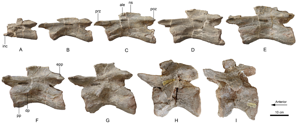 王氏栗树龙的颈椎序列左侧视照片。(中国科学院古脊椎动物与古人类研究所供图)