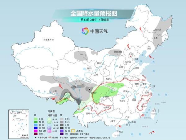 明天,西藏大部、川西高原北部、内蒙古中部等地部分地区有小到中雪或雨夹雪,其中,西藏南部等地局地有大雪。