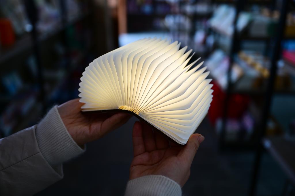 3月6日,游客在位于泾县中国宣纸小镇的宣纸文化园内选购宣纸文创产品。新华社记者 周牧 摄