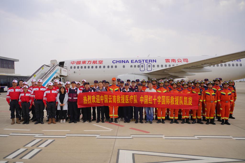 4月6日15时许,中国云南救援医疗队圆满完成在缅地震救援任务,搭乘中国东方航空包机从缅甸仰光返回云南昆明。