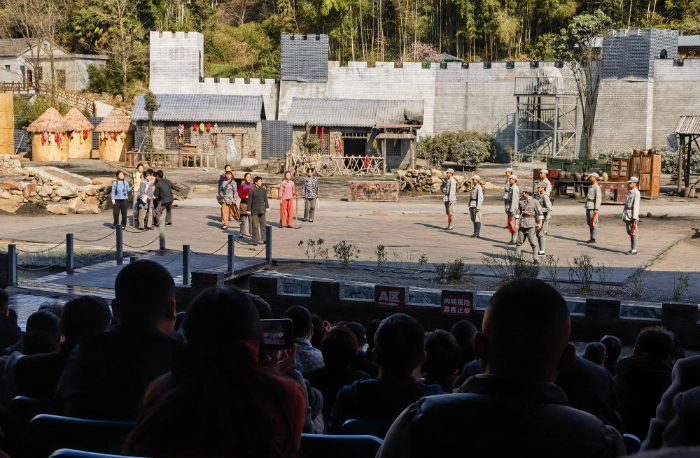 位于大别山腹地的安徽霍山县落儿岭镇,寂静春风掠过草木葳蕤的崖壁,峡谷里却突然腾起硝烟,一阵阵激烈的枪炮声在山谷间回荡。这是大型实景剧《大别山传奇》的演出现场。年轻游客白欣语说,置身现场,数十名战士从山间无畏地冲向敌人时,感觉自己是在历史中震颤的参与者。