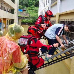 救援人员在广西天峨县民族中学转移学生。(河池市天峨县消防救援大队供图)