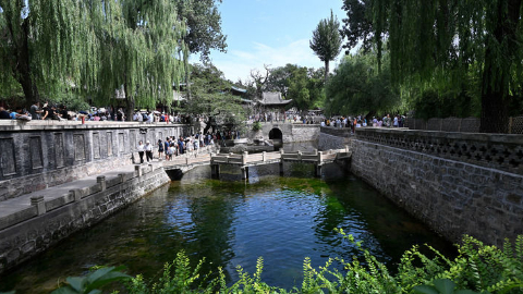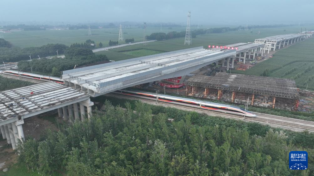 8月13日拍摄的完成转体的桥梁(无人机照片)。新华社发(徐辉 摄)