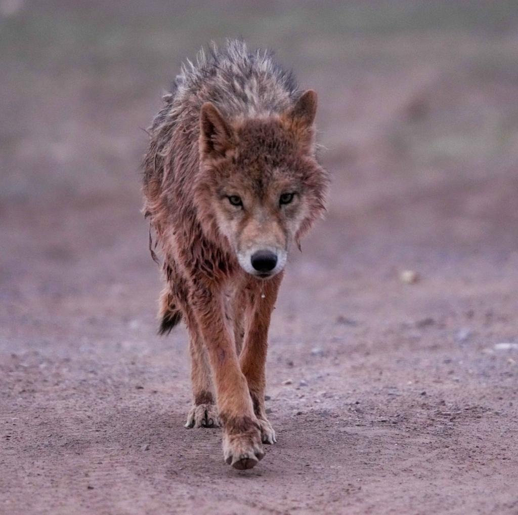 哪知第二天傍晚,这只狼又来了。这次它还没来得及进院子,院门就被出来围观的人们堵住了。它来回试探,时不时往人群方向靠近,目光中充满了乞求和讨好。