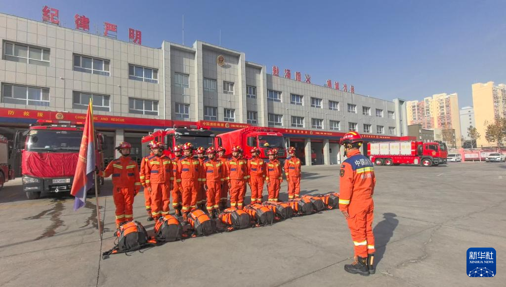 12月4日,新疆克孜勒苏柯尔克孜自治州消防救援支队在阿图什市驻地集结赶往震中。新华社发