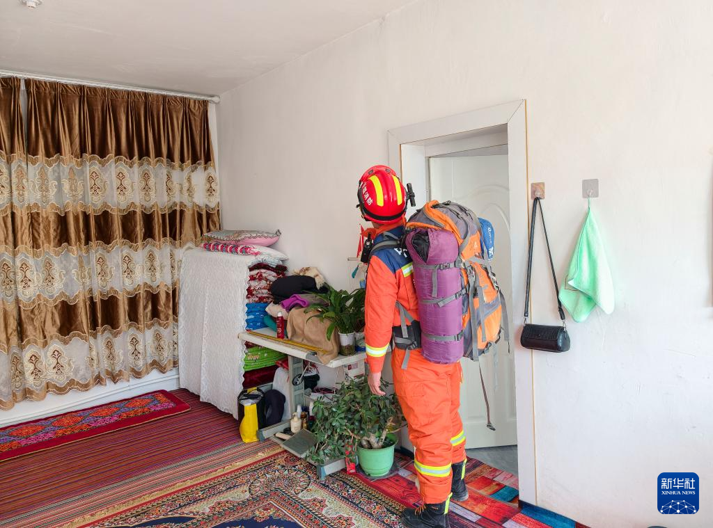12月4日,新疆阿合奇县消防救援人员在库兰萨日克乡吉勒得斯村入户进行探查。新华社发