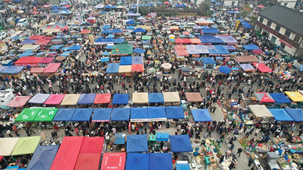 1月25日,滁州“狗市”大集(无人机照片)。新华社记者 白斌 摄