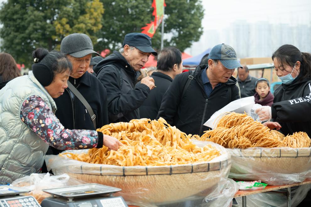 踏入滁州“狗市”大集,最先映入眼帘的便是一派车水马龙的热闹景象——苏A、皖A、皖E、苏D……数百辆悬挂省内外各地车牌的旅游大巴、私家车鱼贯而入,数万名长三角地区的游客与滁州当地市民汇成了摩肩接踵的人流“长龙”,在热气腾腾的小吃摊、琳琅满目的百货铺前流连忘返。“我们从南京自驾过来,一个多小时就开到了,就爱这股热热闹闹的市井气!”拎着满满一袋农货的游客张女士笑着说,和城市商场的精致不同,大集的吆喝声、地道小吃和新鲜土产,让一家人倍感新鲜亲切。