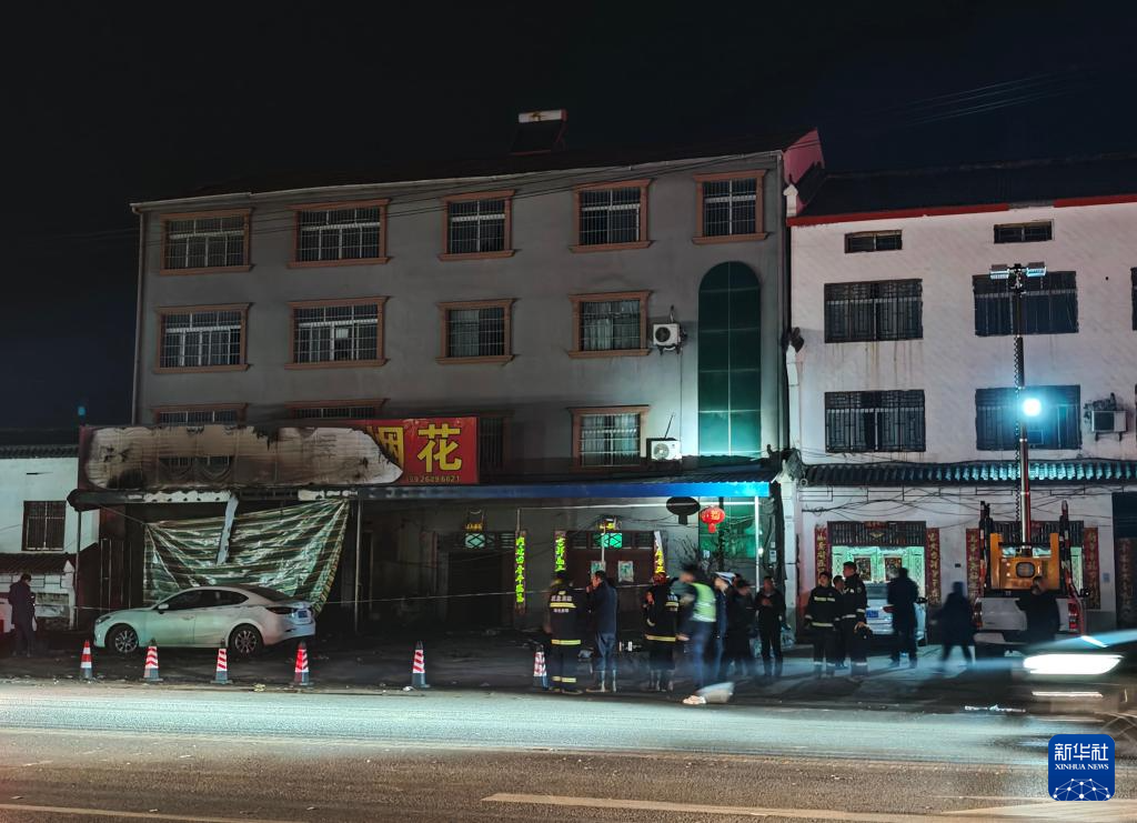 这是2月18日拍摄的事故现场。湖北省宜城市人民政府2月18日发布通报,18日14时24分,宜城市郑集镇千和烟花爆竹专营店发生爆燃,过火面积100余平方米,造成12人死亡。新华社发