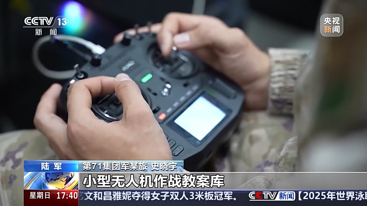 第71集团军某旅 史晓宇:刚开始教学时,没有一套规范化的训练大纲,组训难度较大,后来我们加班加点编研教案,最终形成一套2万余字的《小型无人机作战教案库》,大大缩短人才培养周期。