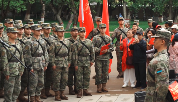 5月22日,空军工程大学演练一旅官兵途径枣坪革命旧址,开展“学习强军思想 唱响强军战歌 献身强军实践”活动,为群众演唱红色歌曲,周围的群众纷纷自发地加入到其中,与官兵们齐声合唱。(何格格、吴森俊、汤雨杭、胡超腾、蔡文浩、齐岩璋、杨浩源、王尚宗、张沿轲、杨文涵)