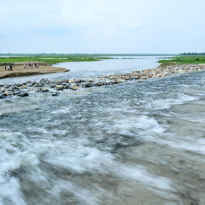 绰尔河水流入通辽市莫力庙水库(6月30日摄)。