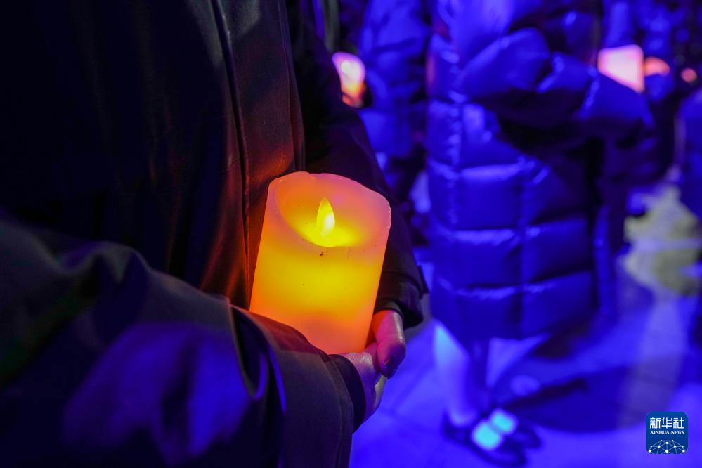 12月13日,参加活动者手捧烛光灯,祈愿和平。