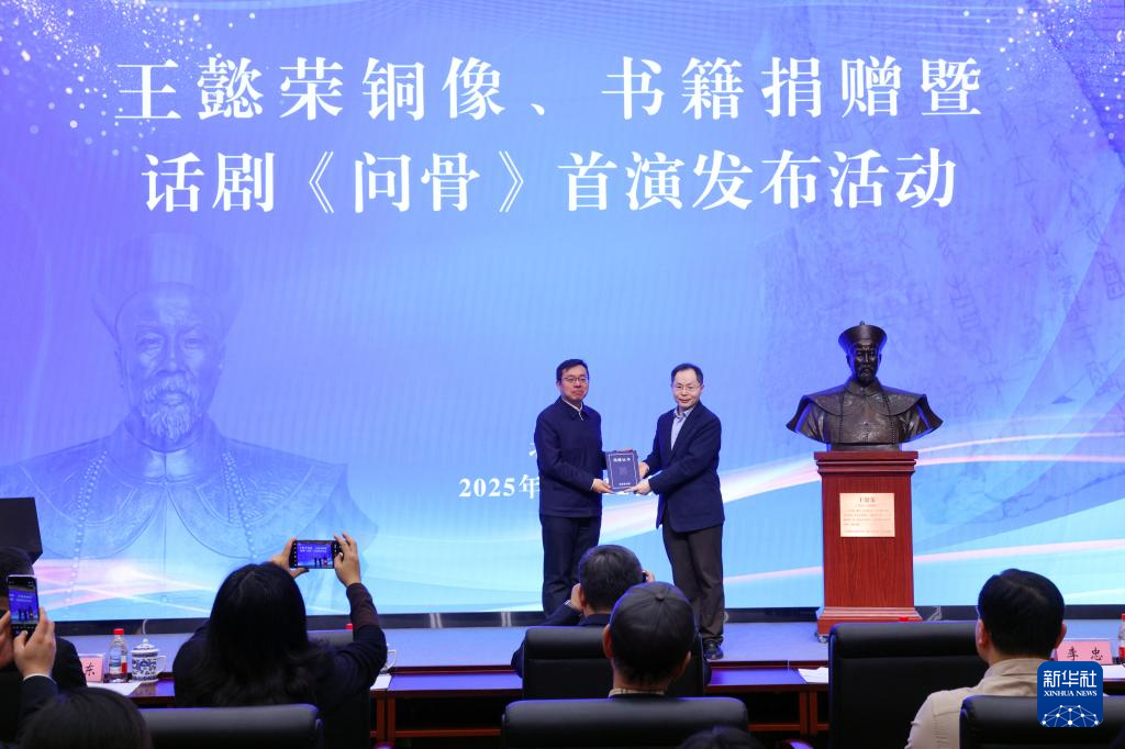 王懿荣铜像、书籍捐赠暨话剧《问骨》首演发布活动在国家图书馆举办-新华网