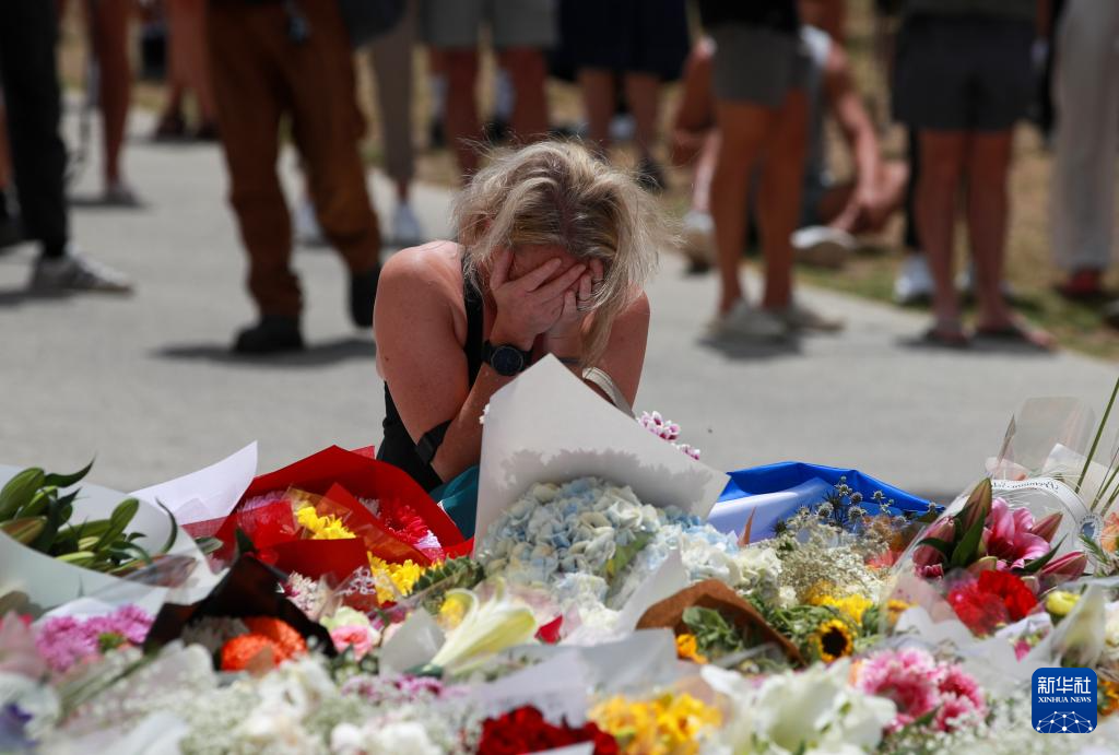 12月15日,在澳大利亚悉尼,一名女子在邦迪滩枪击事件现场附近悼念遇难者。