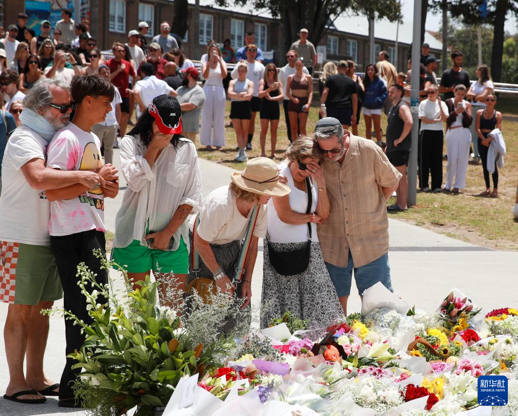 12月15日,在澳大利亚悉尼,人们在邦迪滩枪击事件现场附近悼念遇难者。