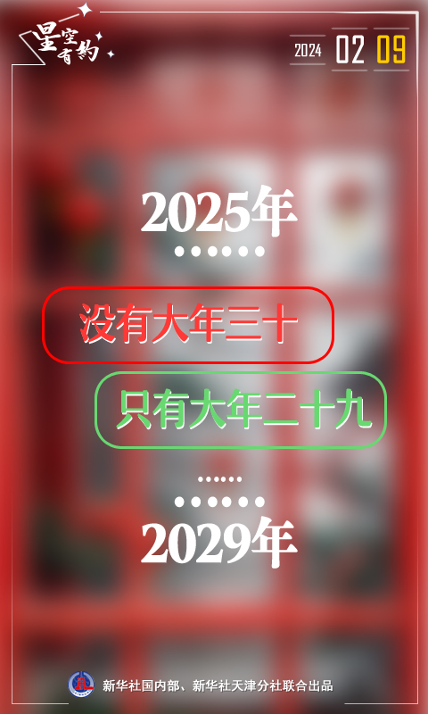 新华社天津1月13日电(记者周润健)近日一则“未来5年都没有大年三十”的消息引发公众关注。消息称,2024年2月9日是近年来最后一个大年三十,因为从2025年起至2029年都没有大年三十,只有大年二十九。天文科普专家表示,大年三十时有时无是正常历法现象,系农历大小月所致。