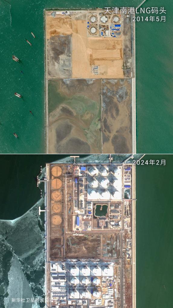 沿着海岸线一路南下,一座伸向海洋的LNG(液化天然气)接收码头出现在天津港南港港区。