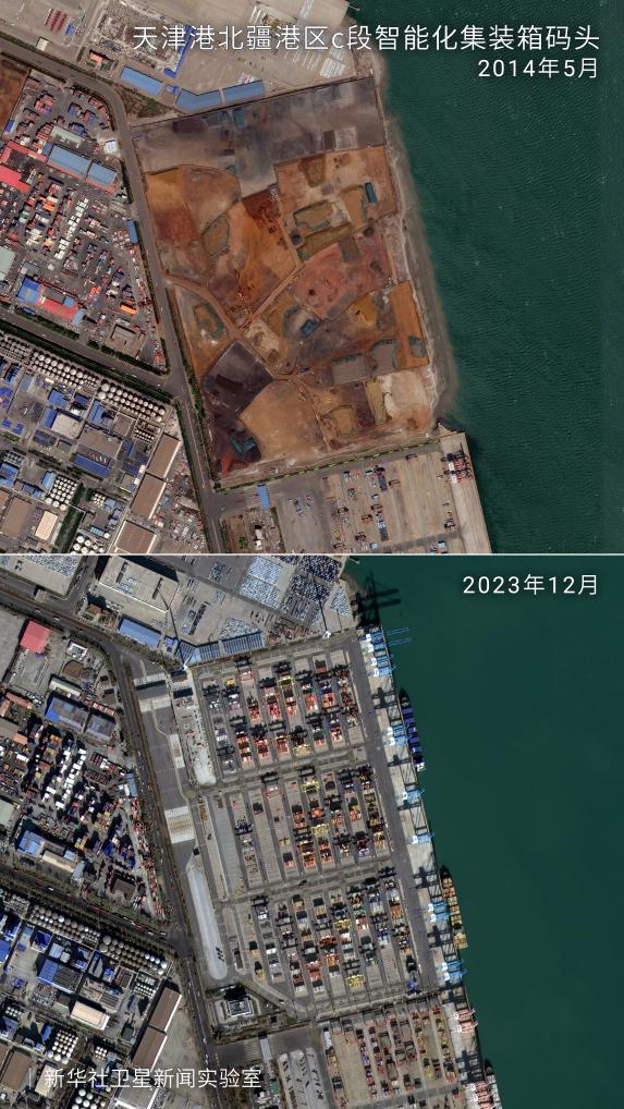 三大指标跃升背后,是更生动的港区之变、协同之变。记者从高空卫星和亲眼见闻两个视角,在三个点位一窥十年高质量发展之变。