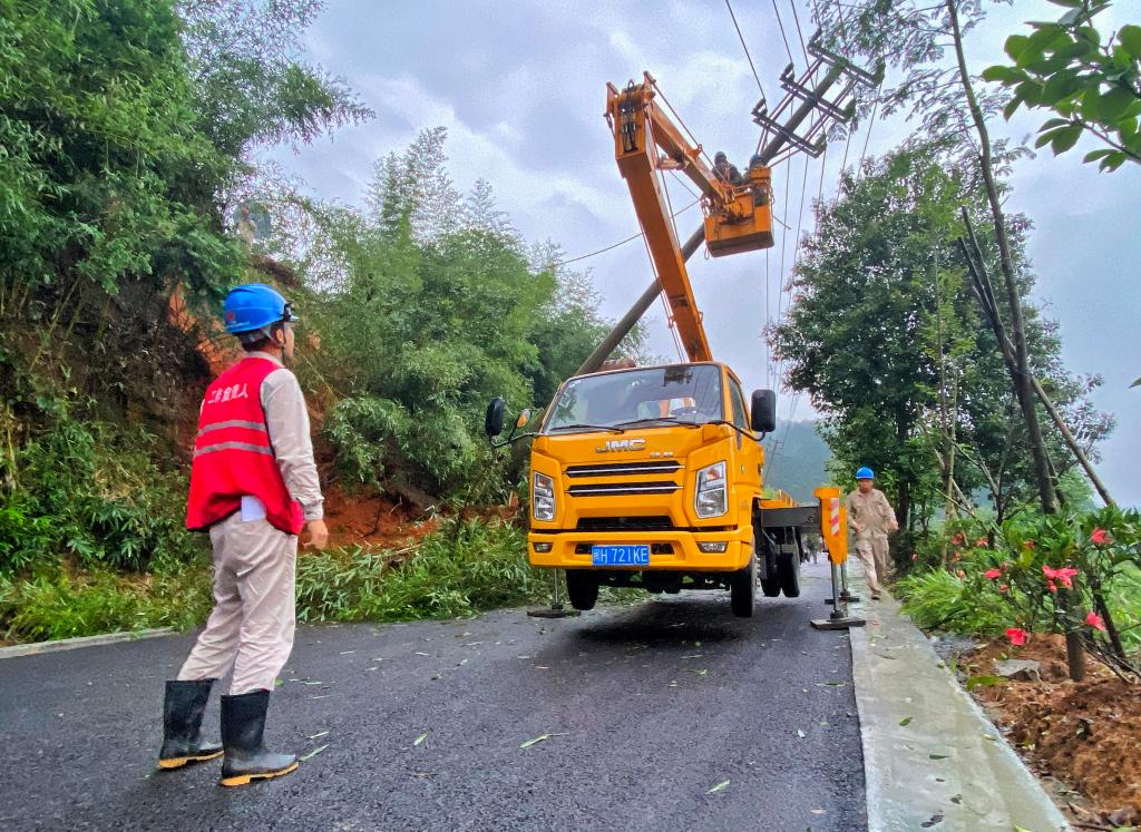 6月13日,国网南平市延平区供电公司工作人员在抢修受损电力设施。(受访者供图)