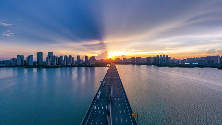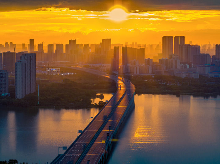 夕阳下穿越汤逊湖的四环线。谢汉民 摄