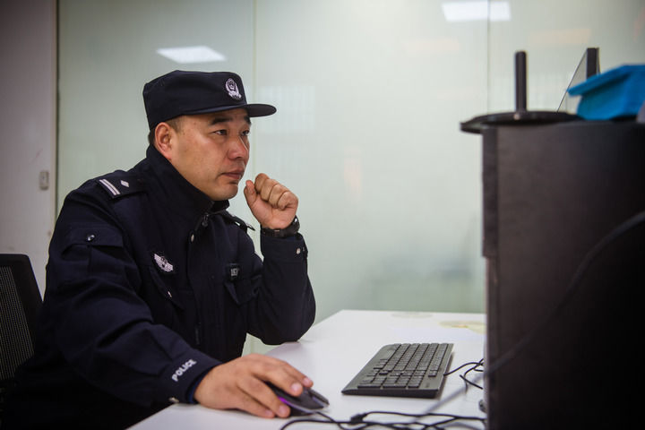 武汉市公安局江夏区分局大桥派出所民警涂凯峰。新华社记者 伍志尊 摄