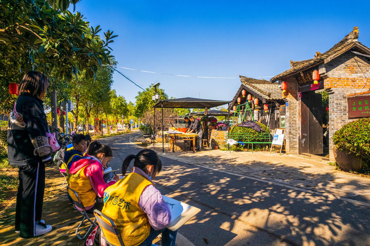 孩子们在五里界小朱湾写生。柳斌 摄