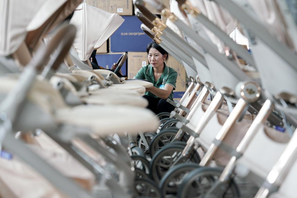 8月19日,河北省平乡县一家童车生产企业的员工在车间内工作。 新华社记者 牟宇 摄