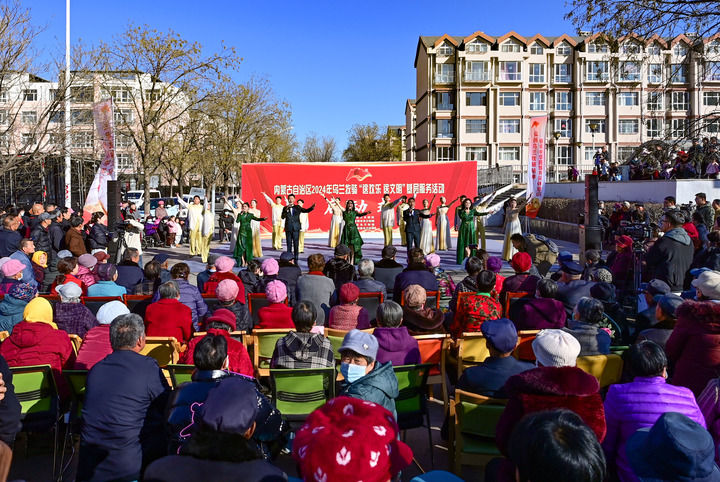 2024年11月21日,在内蒙古伊金霍洛旗阿勒腾席热镇,乌兰牧骑队员表演歌舞节目。新华社发(王正摄)