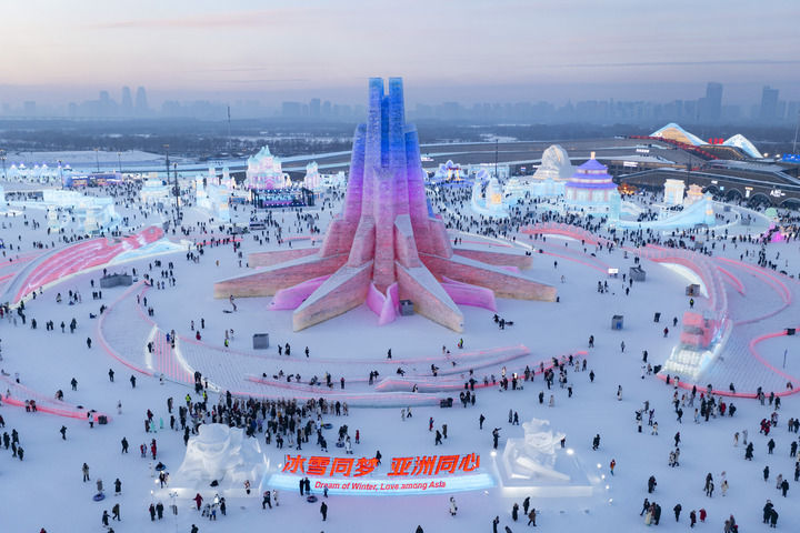 黑龙江哈尔滨,第九届亚洲冬季运动会即将在这里举行。冰雪大世界里,冰雕晶莹剔透、游客热闹欢腾,日均接待人次达到5万左右,映衬冰雪经济活力十足。