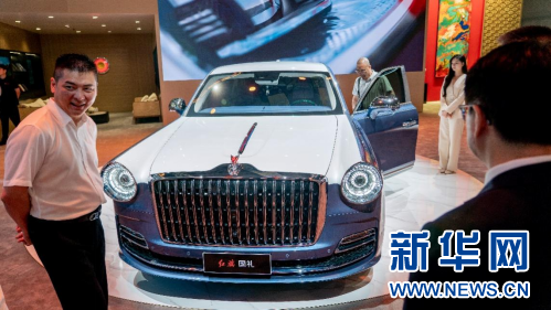 游客在第21届长春国际汽车博览会上,参观红旗车型。(2024年7月13日摄)新华社记者 唐成卓 摄