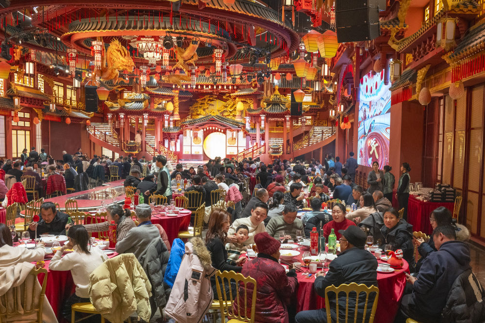 2025年1月28日,人们在安徽省芜湖市繁昌区一家酒店内吃年夜饭。新华社发(肖本祥 摄)