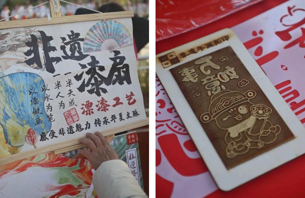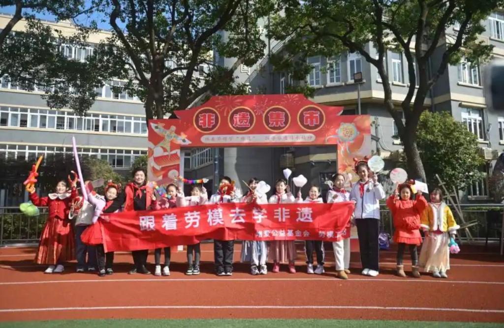 上海市民办尚外外国语小学携手虹口区教育学院劳模工坊的13位劳模和非遗传承人开启非遗集市,为学子们带来糖画、漆扇、翻花、拓印、剪纸等体验项目,以及“科技制作吉普车、风向标”手工课程。