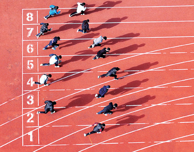 安徽合肥琥珀小学学生在操场上接力跑。陈三虎 摄