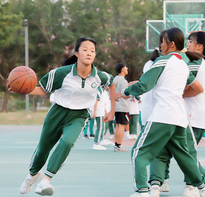 广东广州培英中学学生在课间进行小规模篮球对抗赛。龙媛 摄