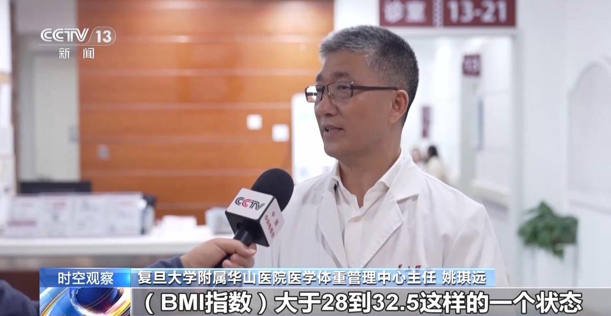 复旦大学附属华山医院医学体重管理中心主任 姚琪远:BMI指数大于28到32.5,那么你要寻求医学的帮助了,我们要做筛查,是不是有伴有血糖的异常,血脂的异常以及尿酸的异常,针对一些病变来用药。