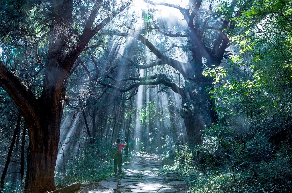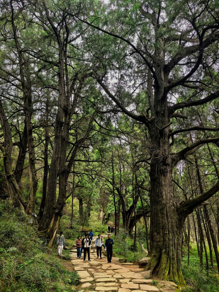春日古道,低头是温润古朴的青石板,抬头是遮天蔽日的古柏树,耳边风声飒飒,空气中尽是草木清香。徒步其中,仿佛能够听到马铃声从远方传来,一位旅人正背着竹篓,从转角经过。