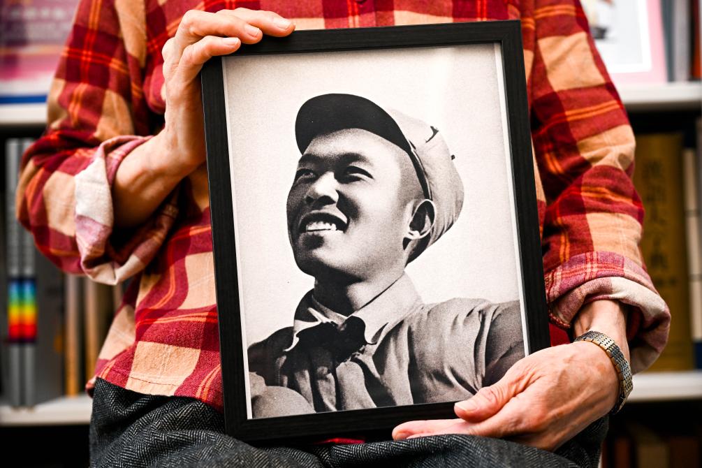 2025年4月14日,在浙江省杭州市,雷烨外甥女项碧英在家中手捧雷烨烈士抗战时期的肖像照。新华社记者 刘金海 摄