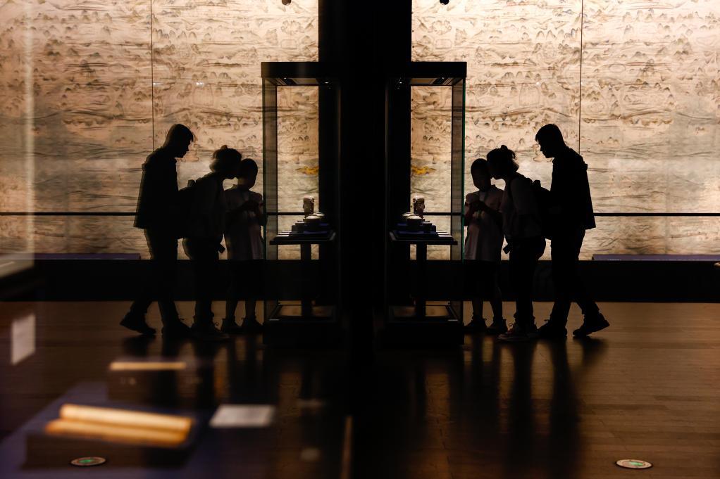 利用玻璃的反光与倒影,结合光影的交错营造出深邃而神秘的氛围感,惊艳于展品本身的同时,被其所承载的历史与内涵深深震撼。