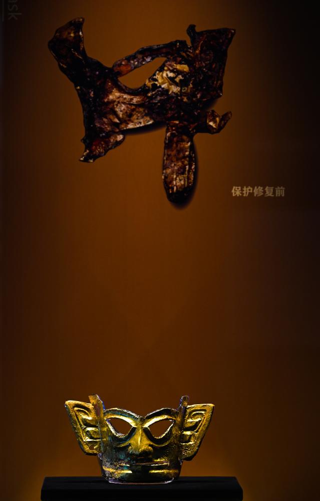 这是2024年7月23日在三星堆博物馆文物保护与修复馆拍摄的修复后的金面具。新华社记者 王曦 摄