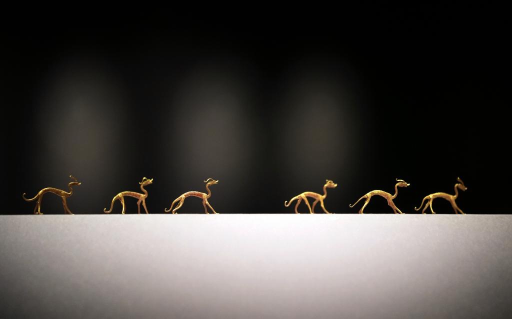 这是2022年5月18日在陕西历史博物馆“大唐遗宝——何家村窖藏出土文物展”上拍摄的赤金走龙。新华社记者 李一博 摄