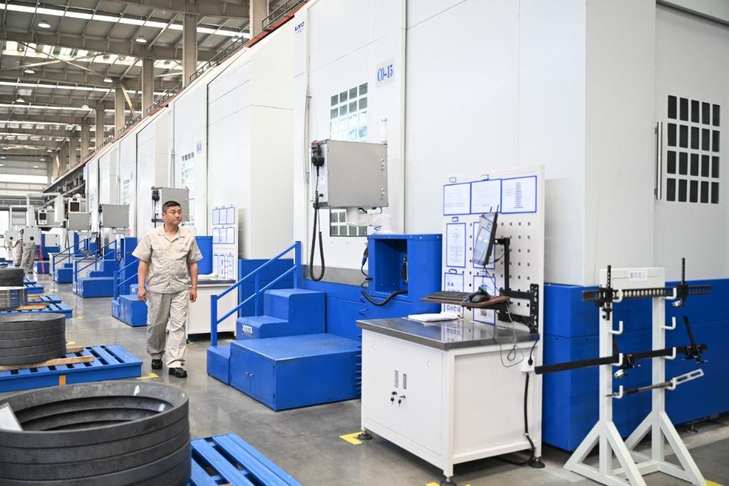 近日,尹双阳走在洛轴集团生产线上。新华社记者 李嘉南 摄