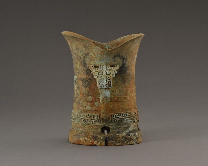 湖北黄陂盘龙城遗址杨家湾M17出土的铜带鋬觚形器(资料照片)。新华社发(全国十大考古新发现活动办公室供图)