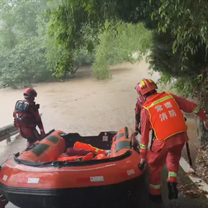 受持续强降雨影响,湖南部分乡镇出现内涝,常德市桃源县是内涝较为严重的区域之一。22日上午,桃源县观音寺镇30多名村民被困家中,接到报警后,桃源县消防救援大队立即前往救援。在道路已被洪水淹没的情况下,消防员小心驾驶橡皮艇到达被困村庄位置,最终成功将32人就地转移到安全地带,将3人带回并转移到镇上。