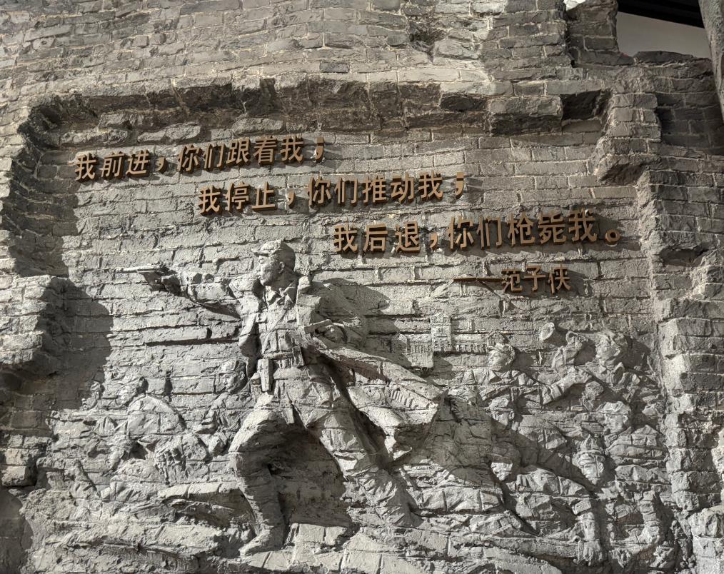 草帽山脚下,南沟村。这里距离阳泉市区车程约半小时,石太铁路从村前通过。记者在村里看到,范子侠将军生平陈列室中,一群群身穿校服的中学生正在仔细参观做笔记;廉政教育大讲堂内,情景党课迓鼓剧《范子侠》正在精彩上演,综合的艺术表现形式让英雄事迹更加深入人心。