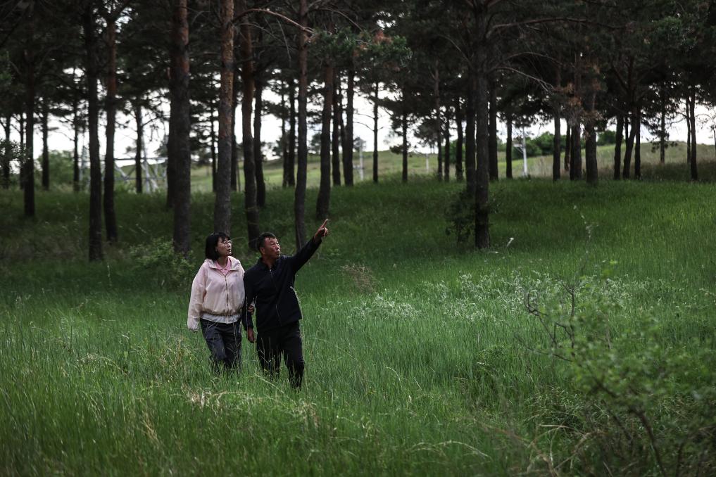 6月3日,李明明下班后来到林场,与父亲李东魁一起在林间散步。新华社记者 潘昱龙 摄